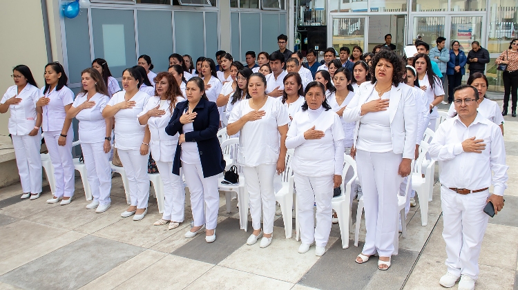 El Dr. Juan Valencia Hipólito, director del nosocomio, encabezó la mesa de honor, junto al Lic. Edizon Ceferino Laguna, Lic. Karla Briones, Administradora del Hospital Simón Bolívar, la Lic. Marlene Bazán, Obstetra Zoila Quiroz y la Técnica en Enfermería Flor Yupanqui Rojas quien, además, recibió un reconocimiento de parte de la gestión.